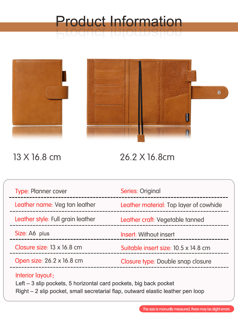 Vegetable tanned leather: Apricot, Honey, Caramel, Chestnut, Midnight, Espresso, Forest, Crimson.