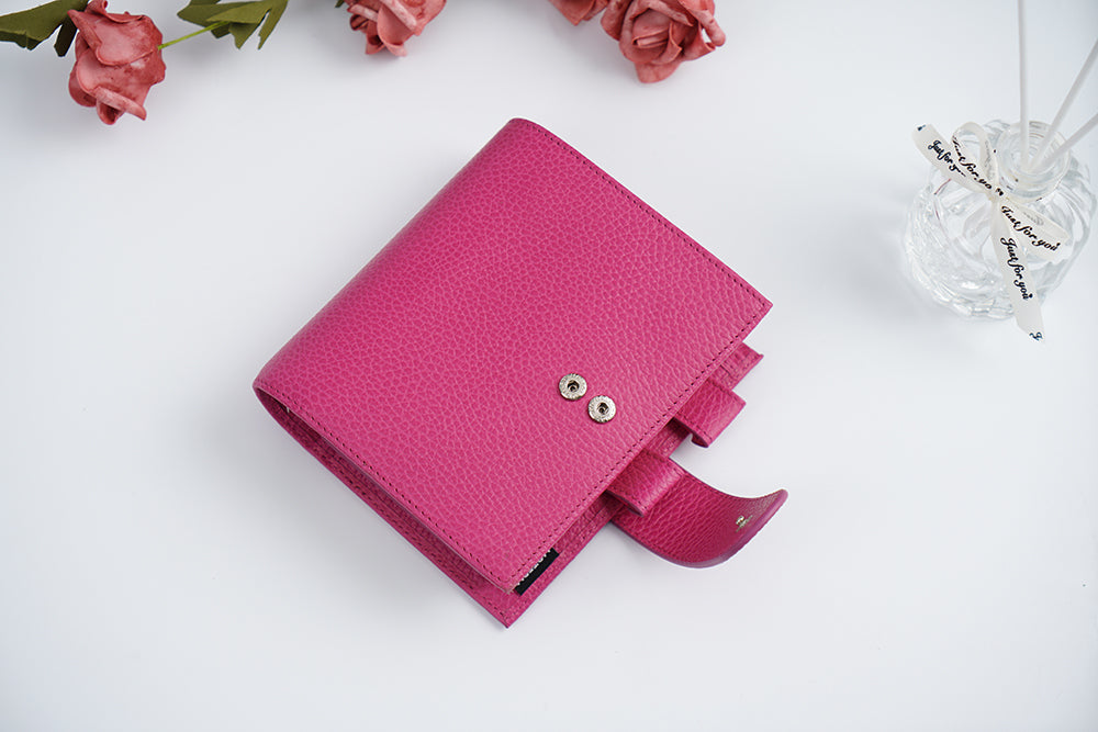 Firm Pebbled Grain Leather: Fuchsia Rose (new), Sky Blue (new), Cherry Red (new).