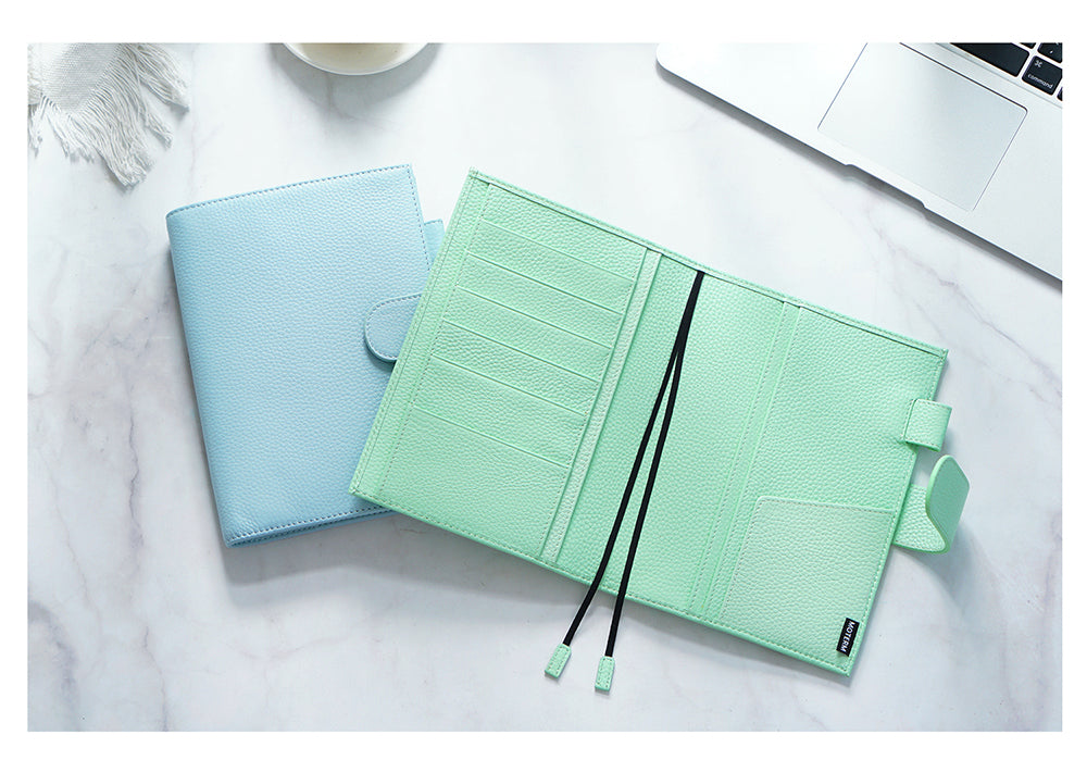 Pebbled Grain Leather: Light blue (new), Mint (new), Burnt orange.