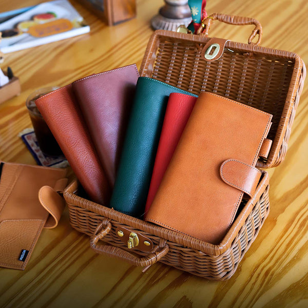 Vegetable tanned leather: Apricot, Honey, Caramel, Chestnut, Midnight, Espresso, Forest, Crimson.