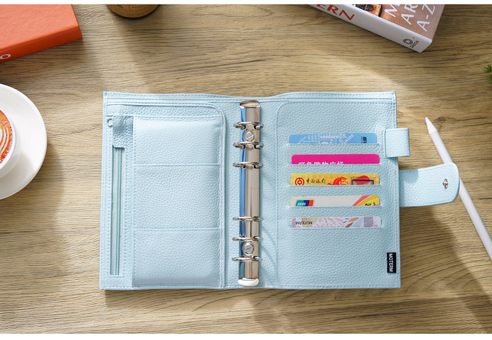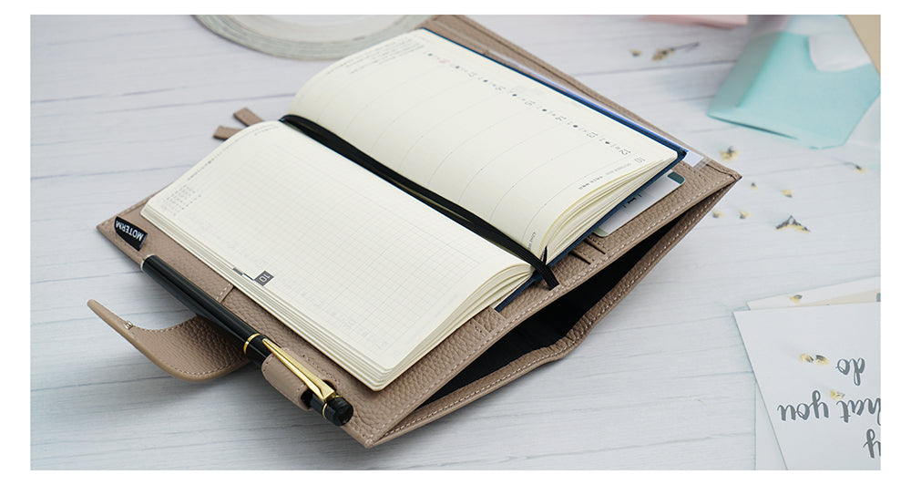 Pebbled grain leather: Light blue, Dusty rose, Taupe, Mint, Lilac.