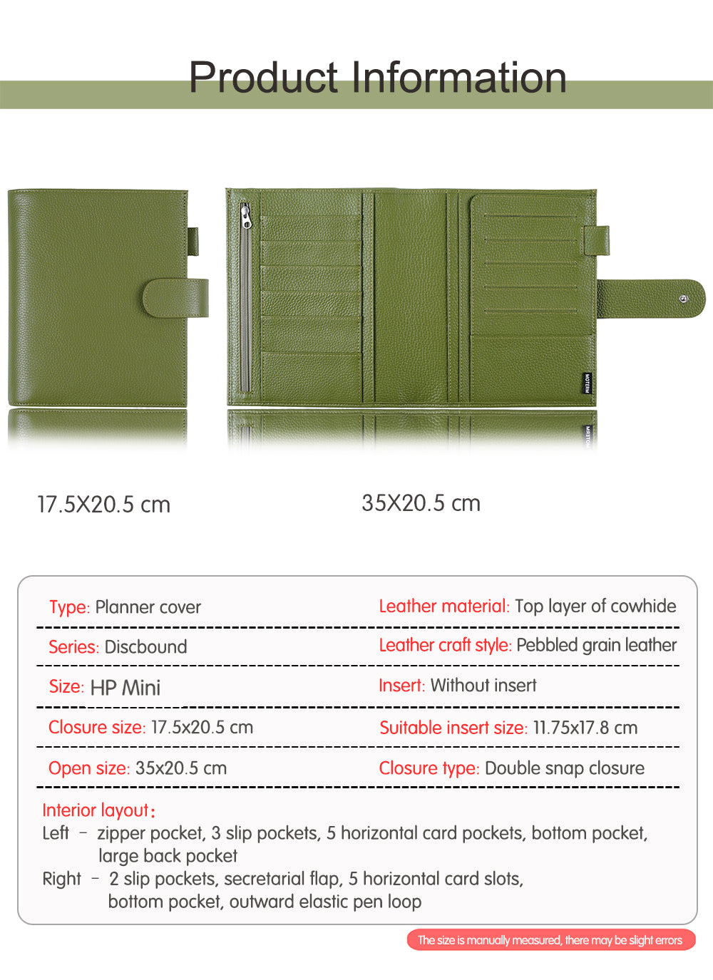 Discbound hp mini cover open size: 35x20.5 cm closure size: 17.5x20.5 cm